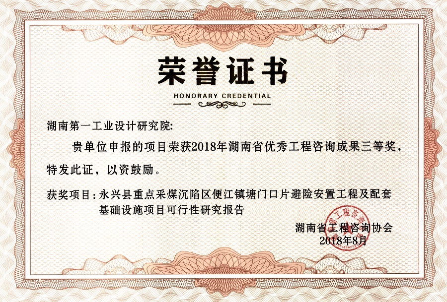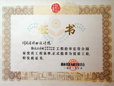 湖南省優秀設計表揚金獎(1984)