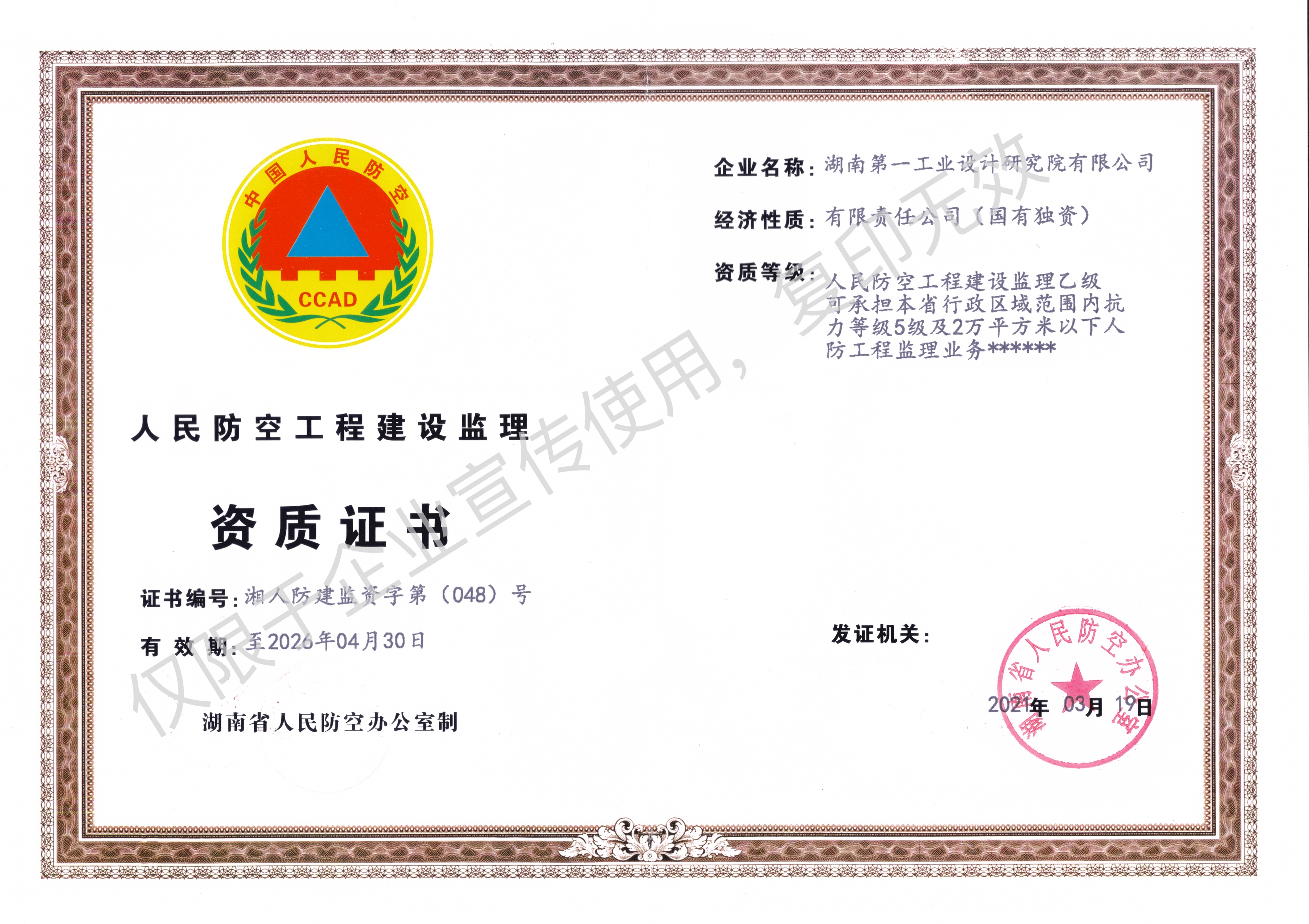 工程設計乙級資質證書