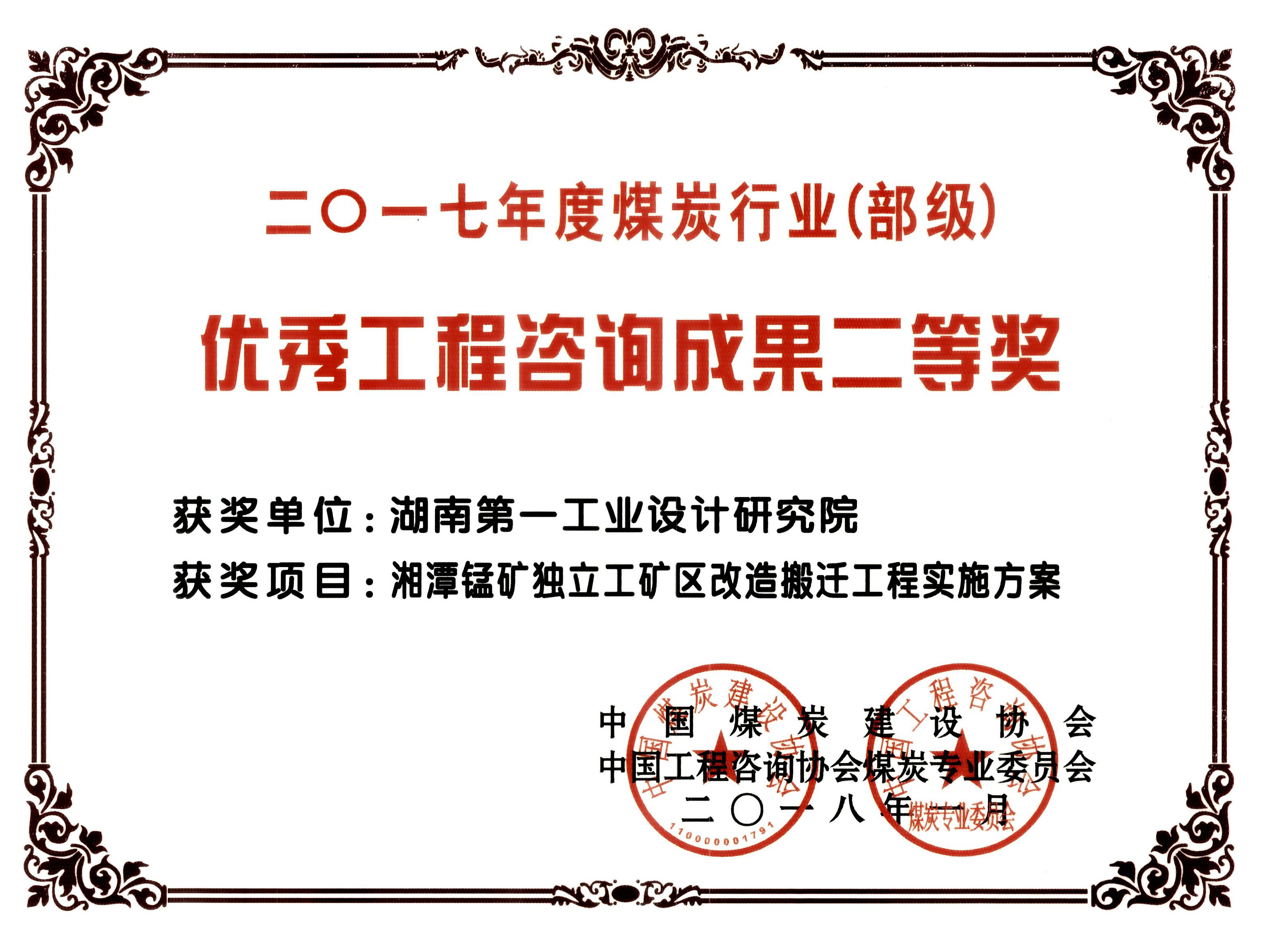 湖南省優秀設計項目二等獎(1984)